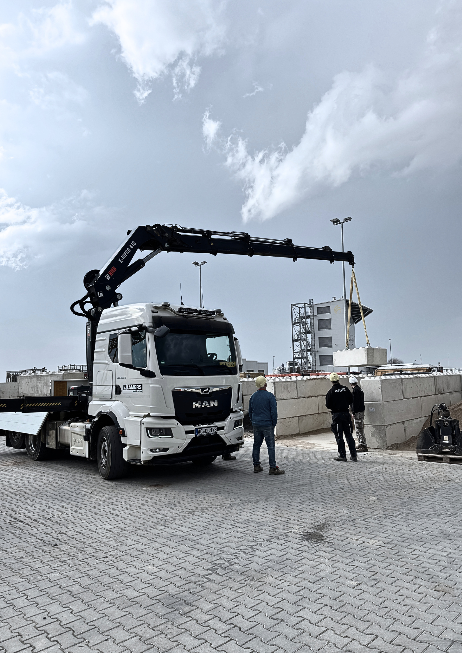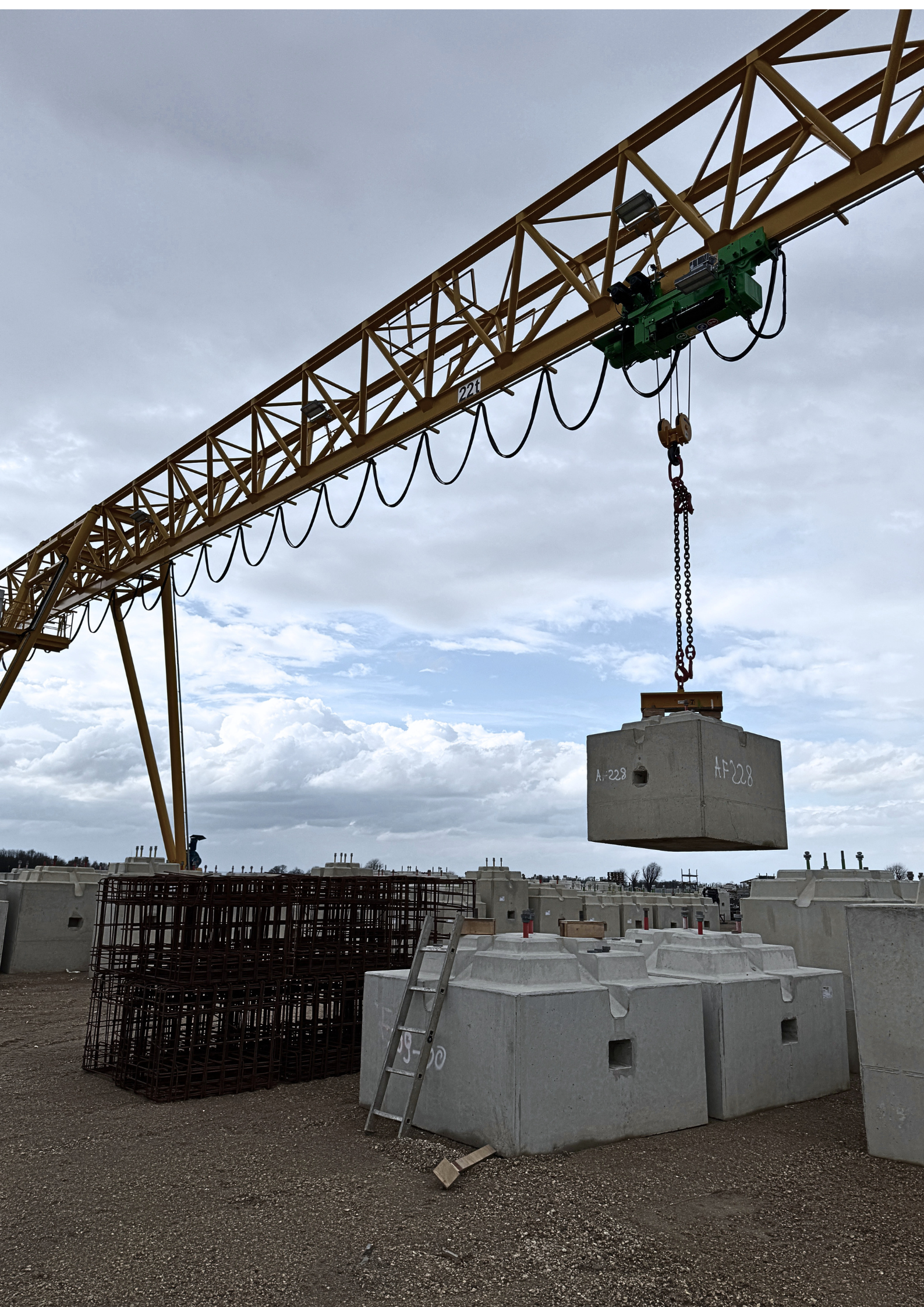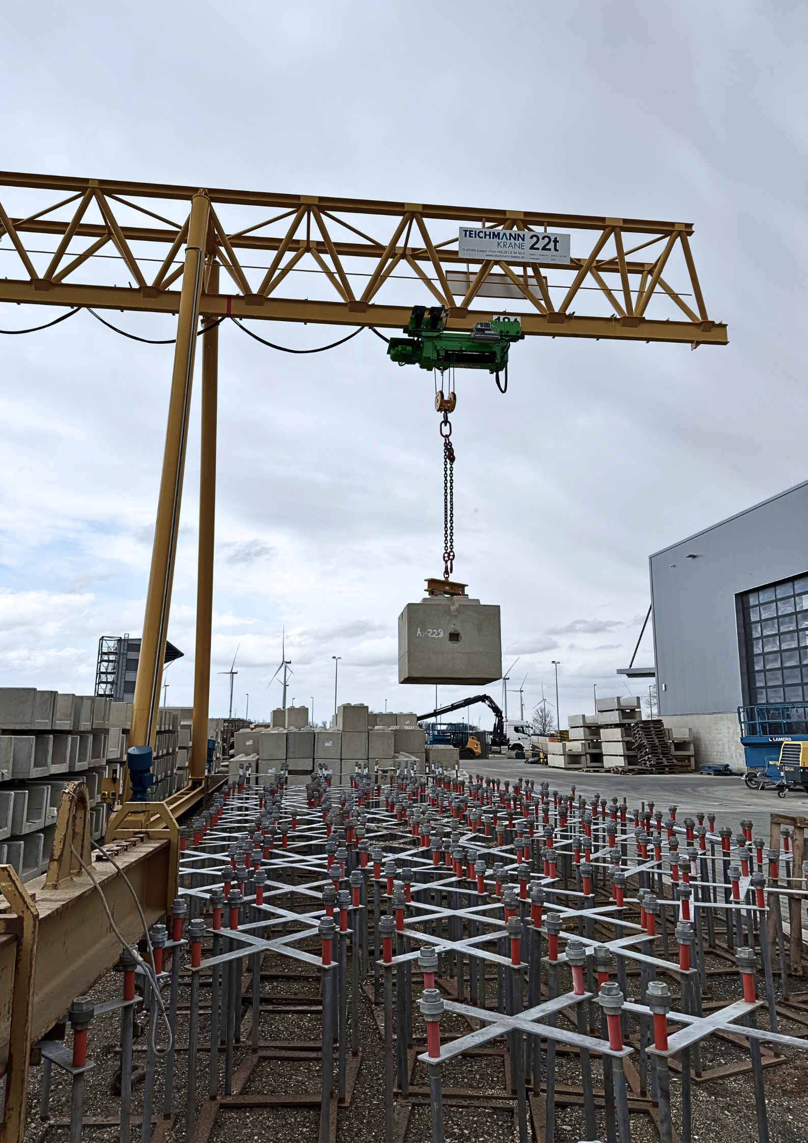 Ein Unternehmensbereich von Lamers ist das Herstellen von Betonfertigteilen. Innerhalb der Fertigung werden für Hebearbeiten Brückenkrane verwendet.