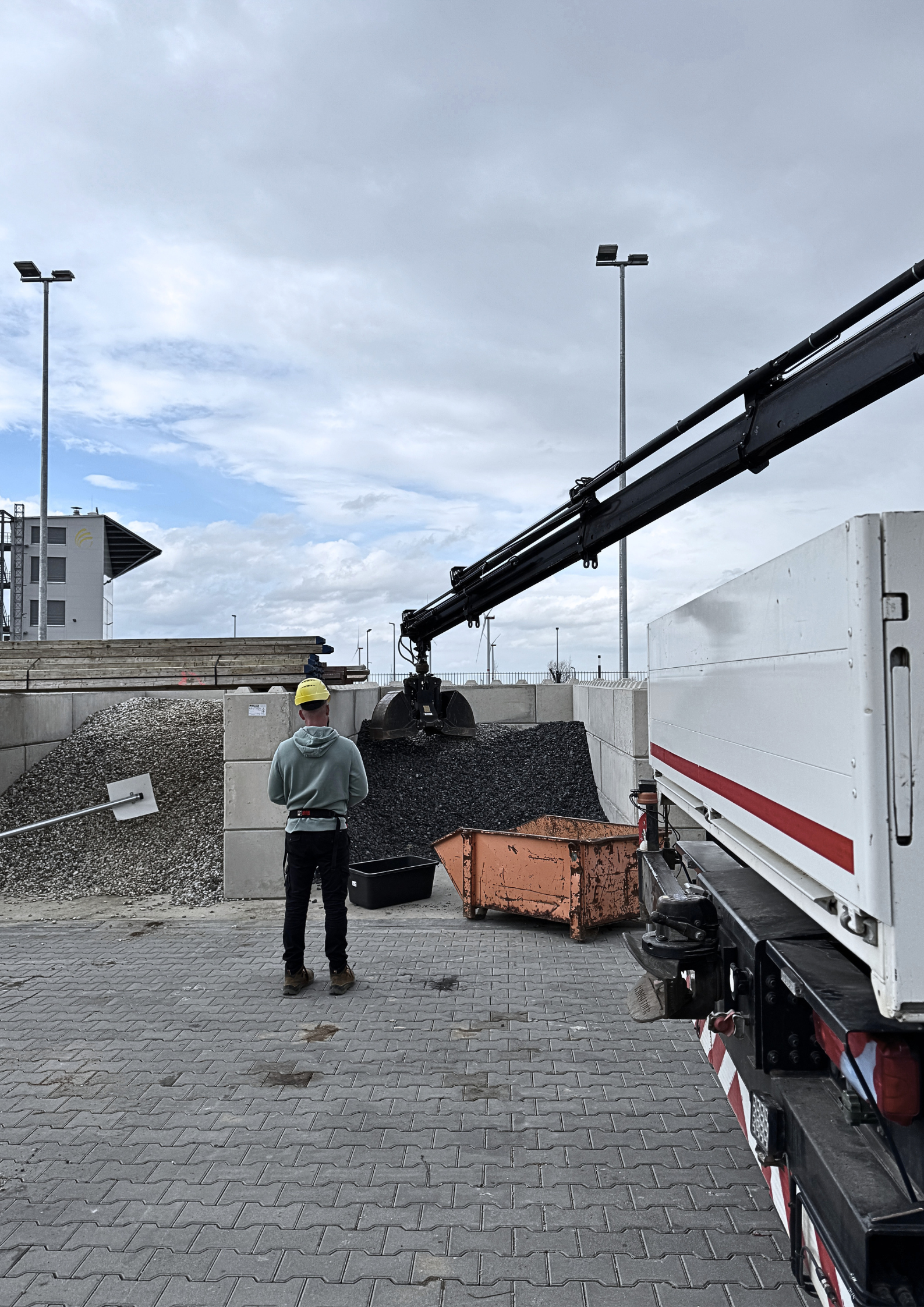 Gepaart mit den Kranen auf dem Firmengelände und dem Anschlagen von Lasten, wurde ebenso eine Qualifikation für den vorhandenen Ladekran durchgeführt.