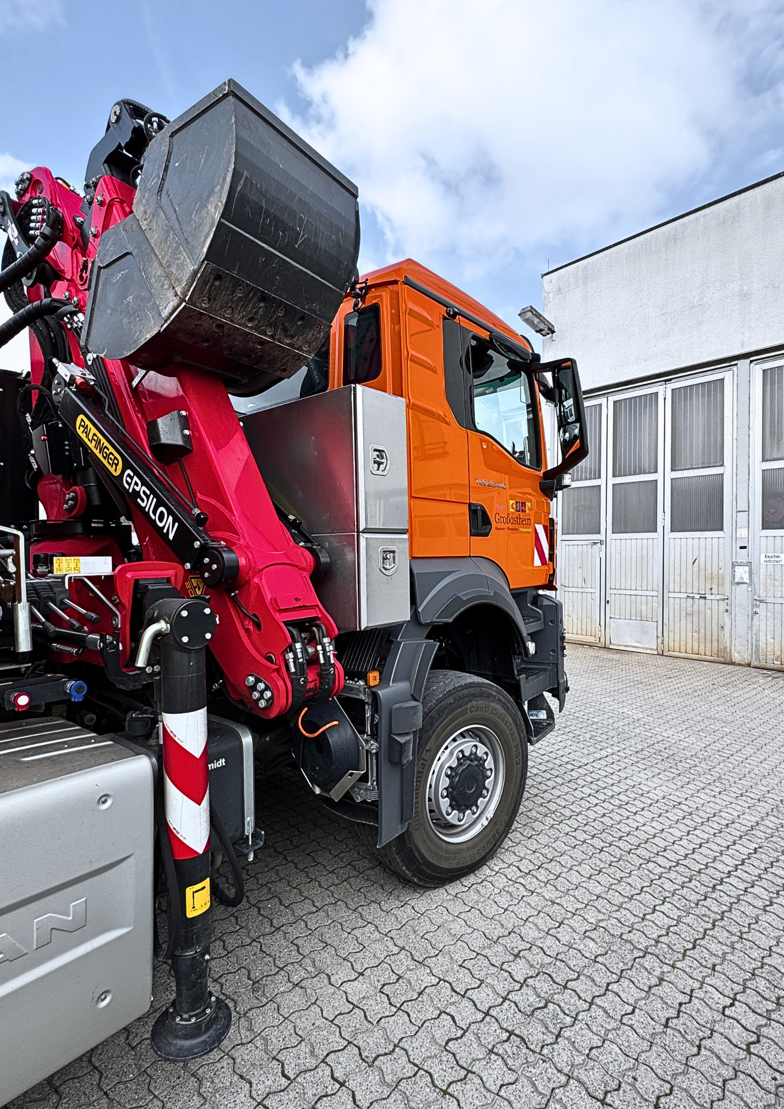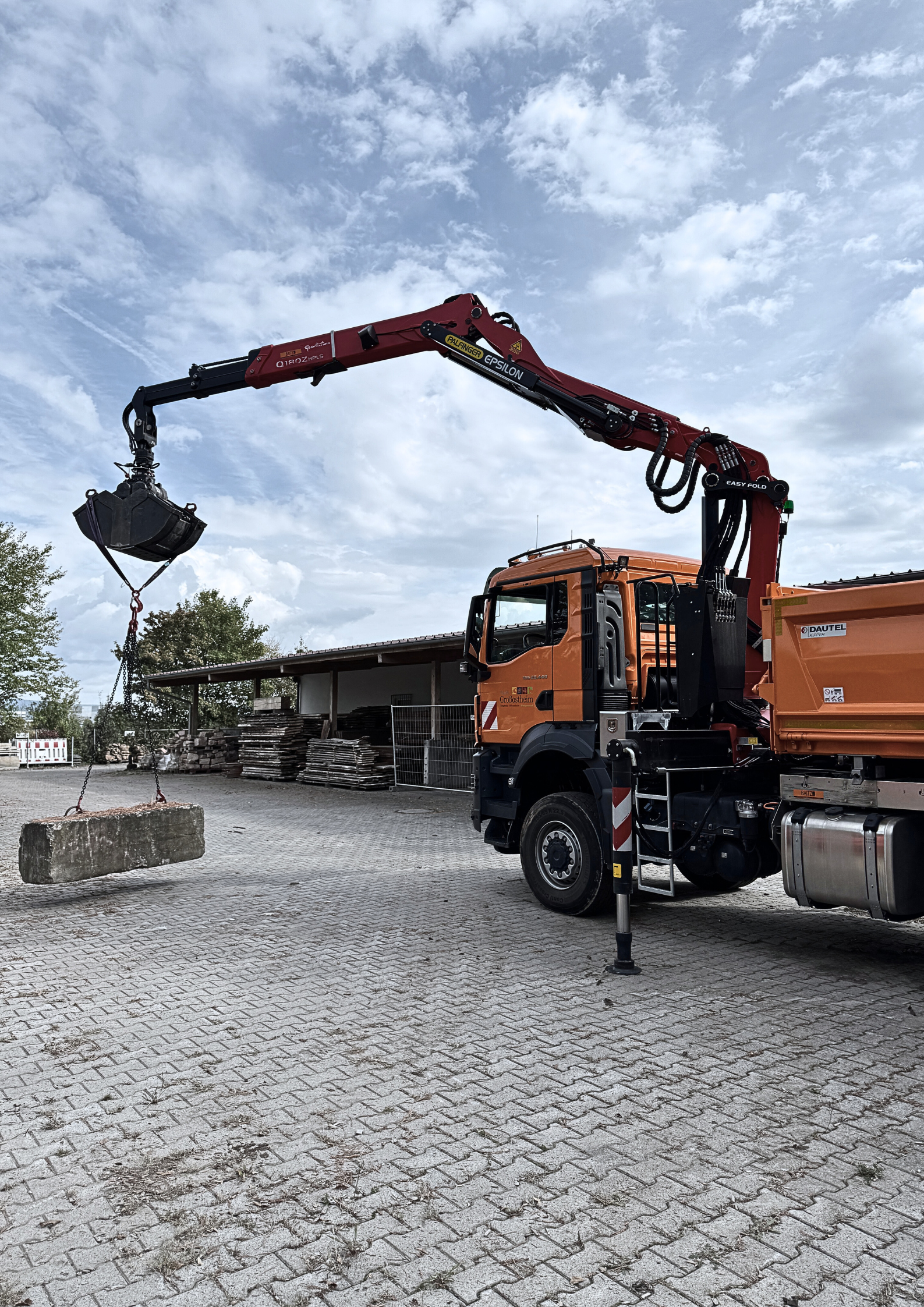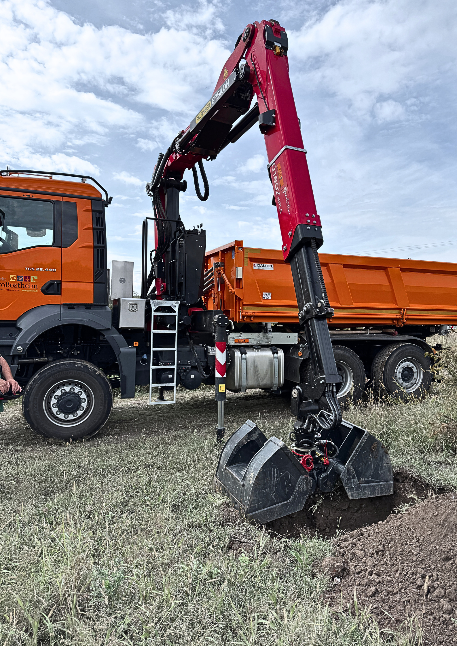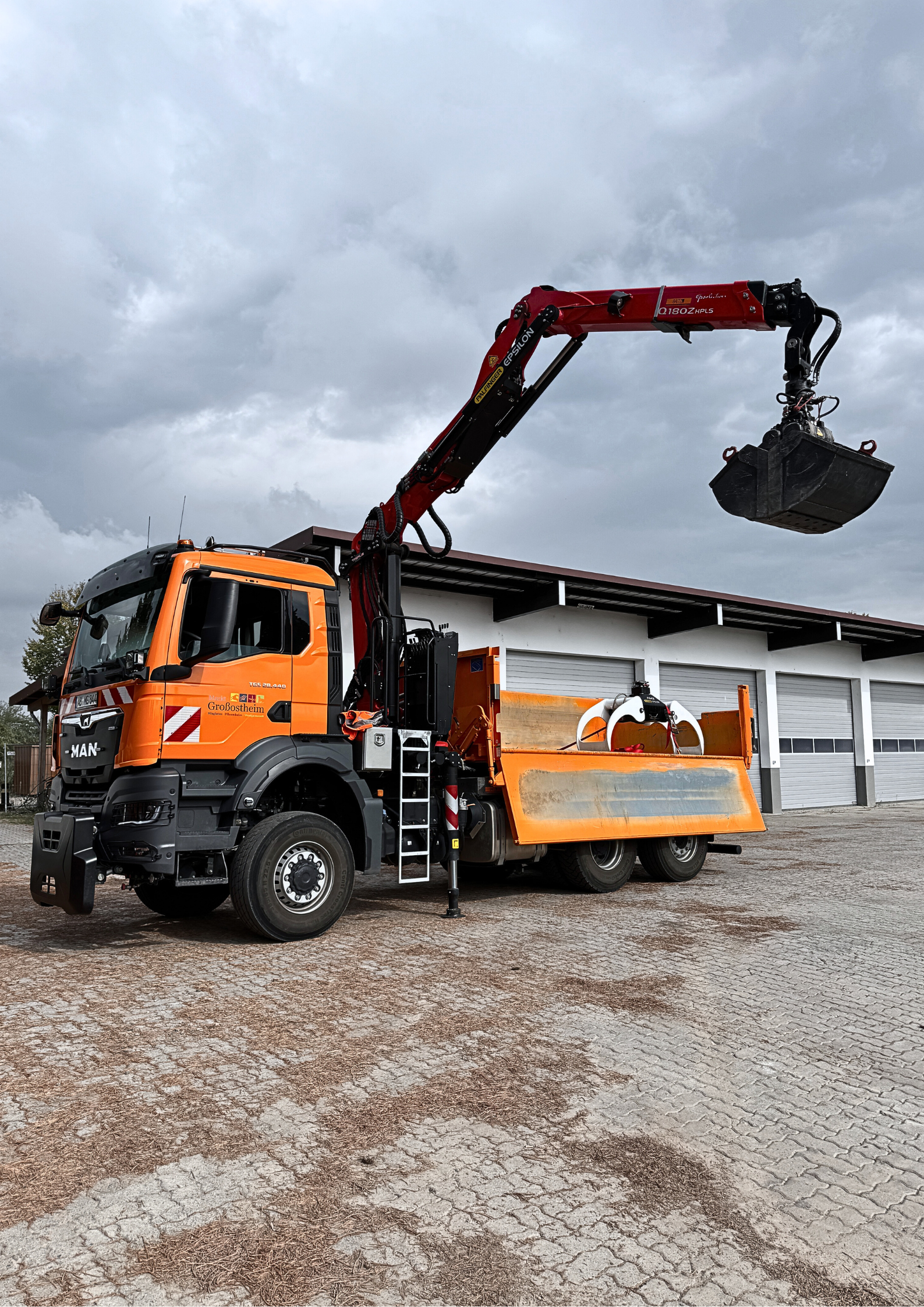 Der Markt Großostheim verfügt seit kurzer Zeit über ein neues Fahrzeug mit Forst-/ Recyclingkran für Grab- und Umschlagarbeiten inkl. verschiedenen Lastaufnahmemitteln.