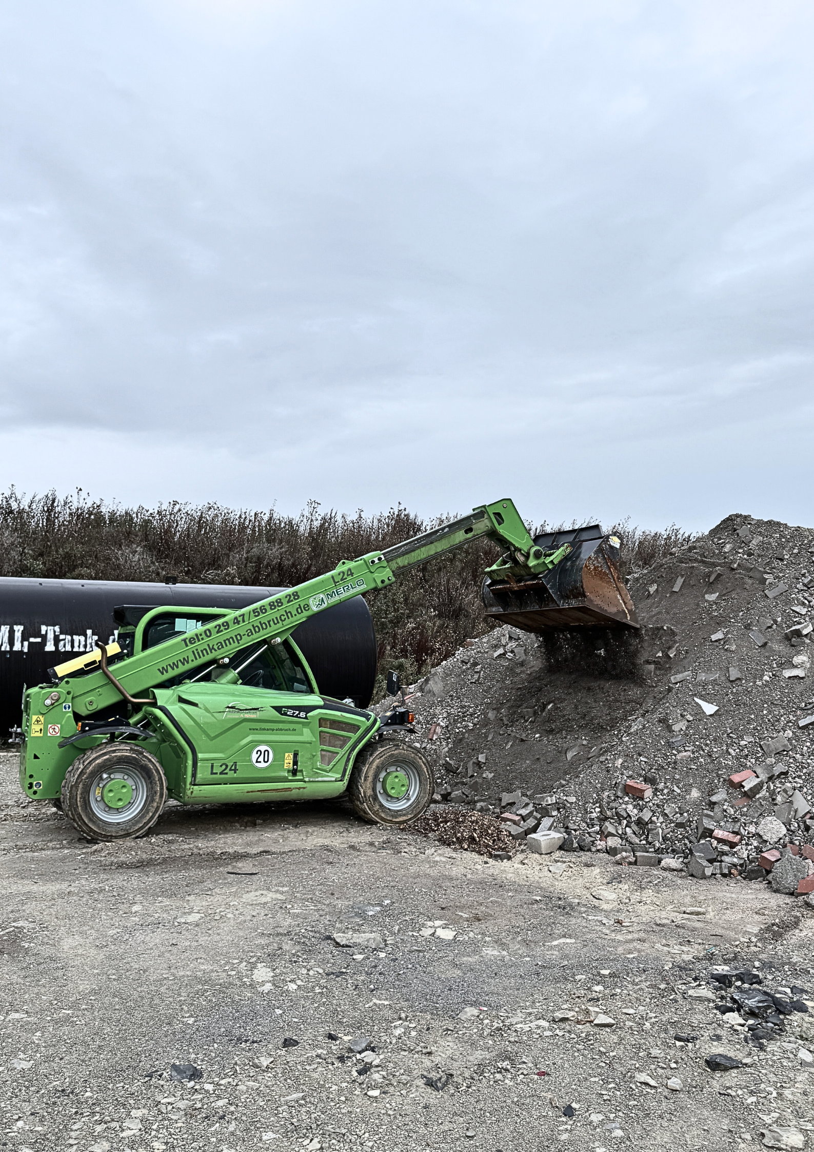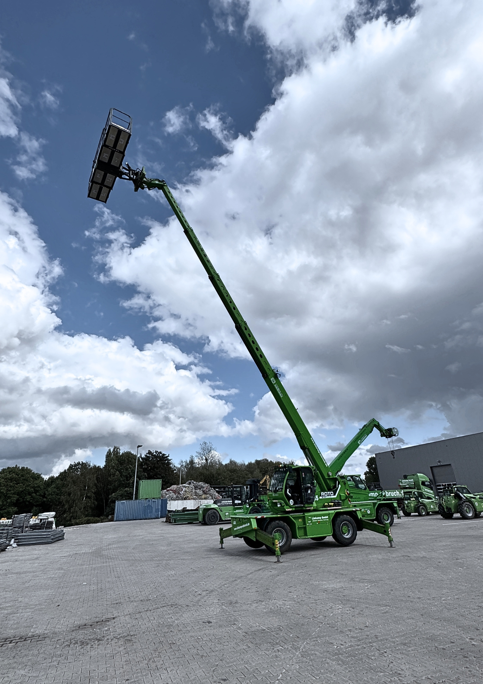 Mit insgesamt 14 Teleskopstaplern, darunter 9 Stück mit drehbarem Oberwagen und verschiedenen Arbeitshöhen, verfügt das Abbruch-, Recycling- und Sanierungsunternehmen Linkamp über einen umfangreichen Fuhrpark von Merlo.