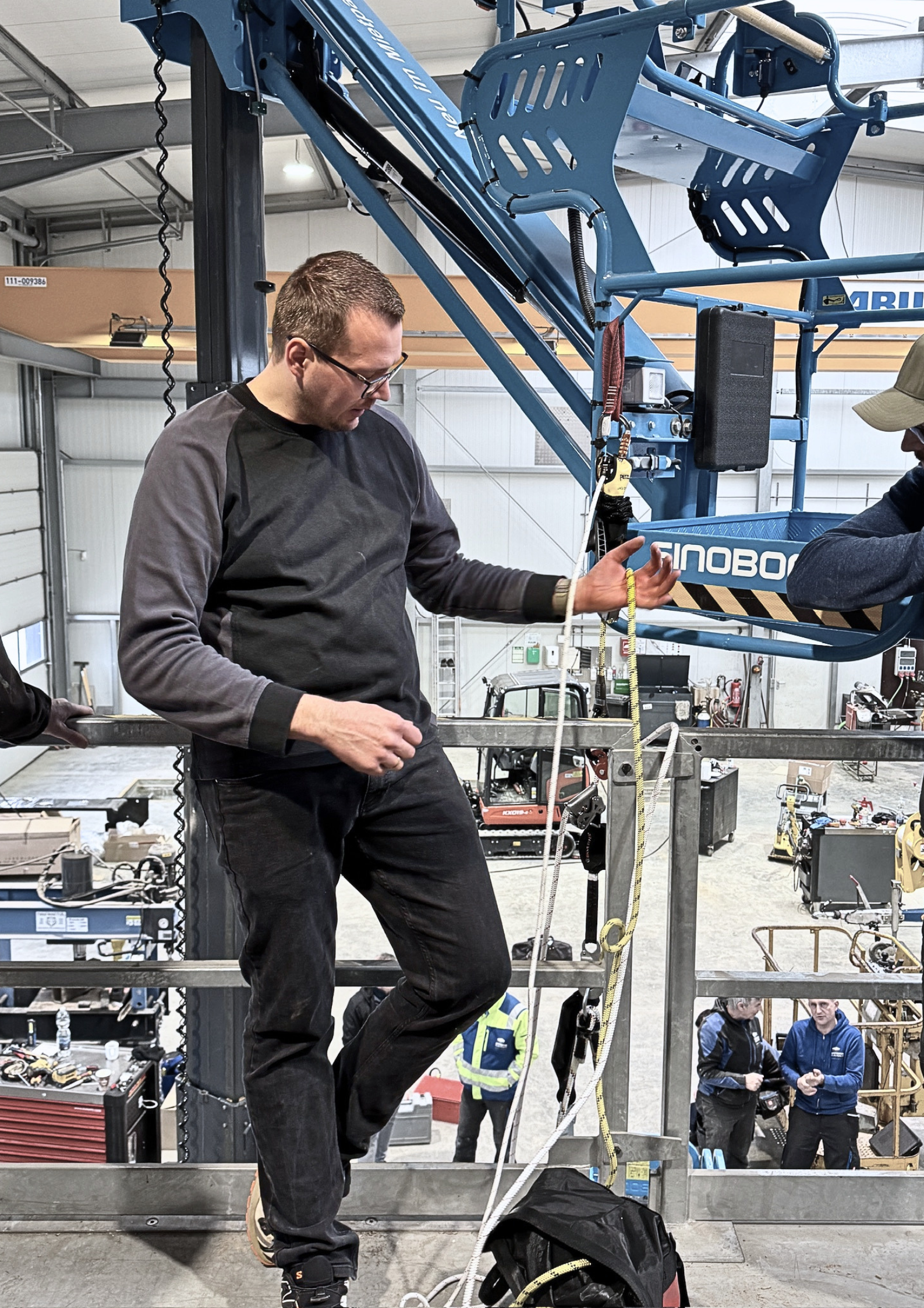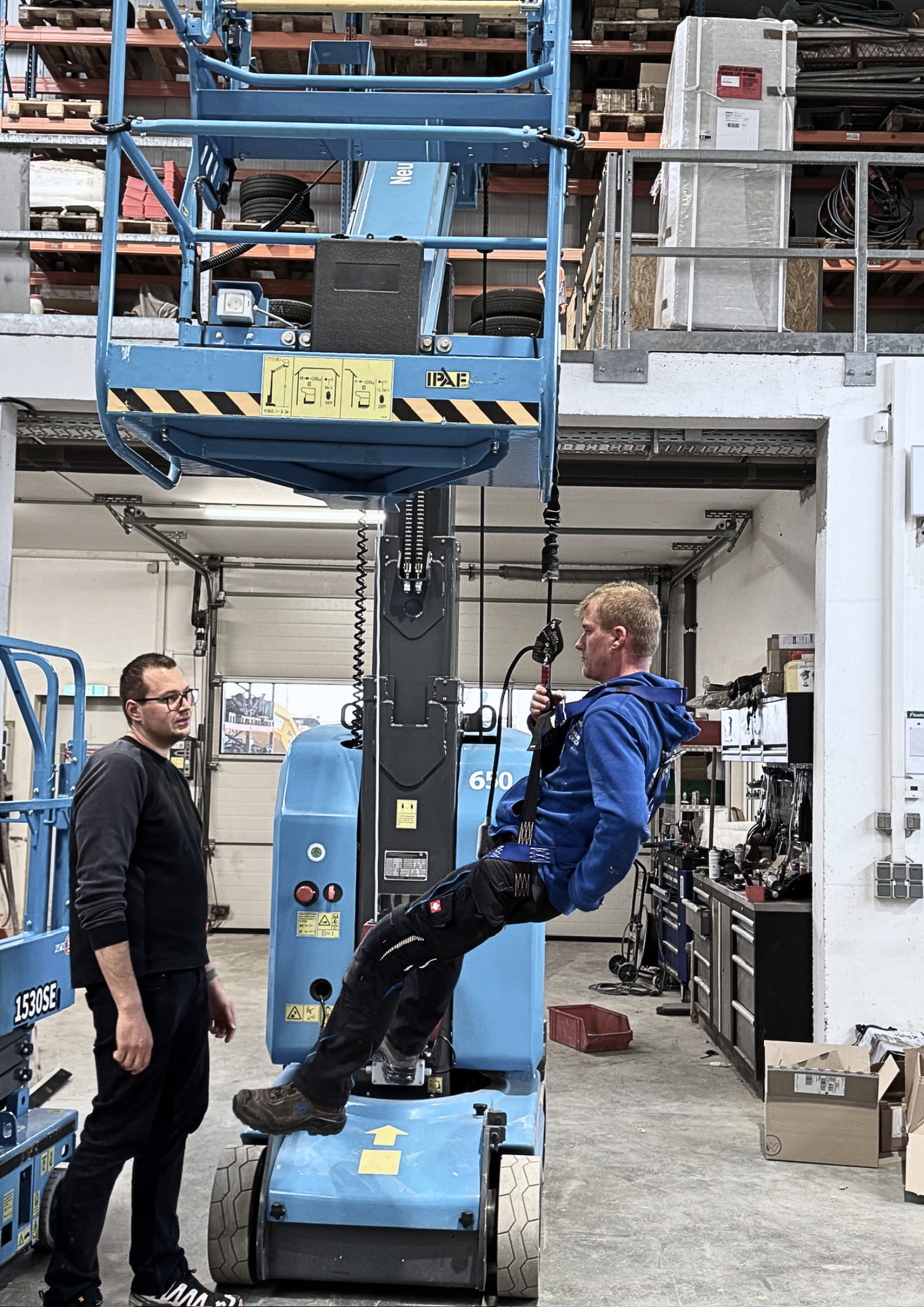 Aufgeteilt in 2 Gruppen wurden die Mitarbeiter in einem theoretischen Part mit den spezifischen Themen des Unternehmens unterwiesen. Im Praxisteil wurde das Thema persönliche Schutzausrüstung gegen Absturz priorisiert.